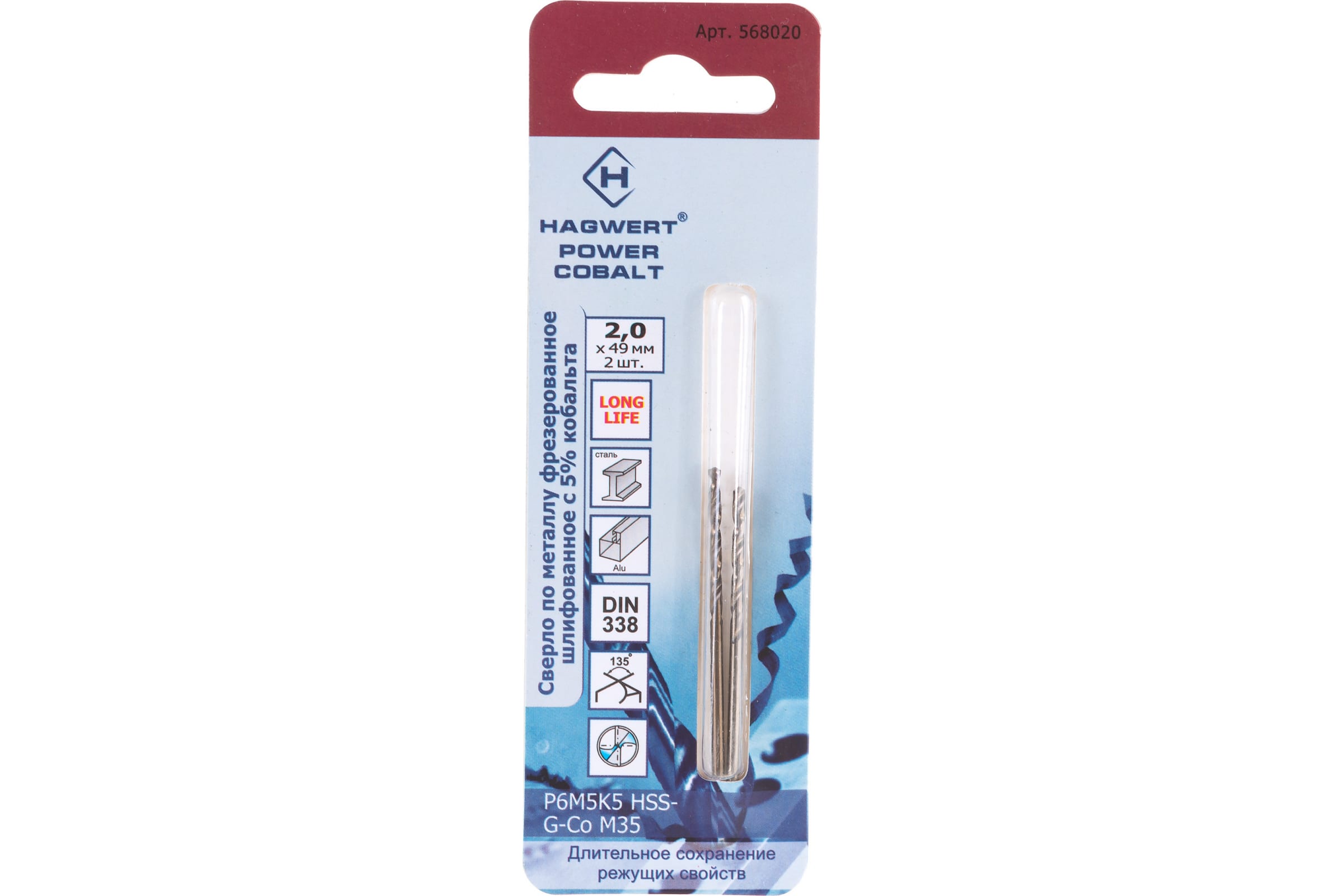Сверло по металлу кобальтовое Hagwert 2 х 49 мм (2шт/уп)