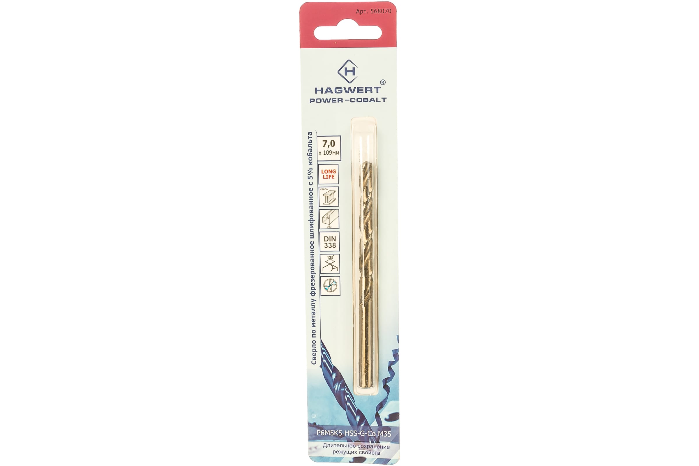 Сверло по металлу кобальтовое Hagwert 7 х 109 мм