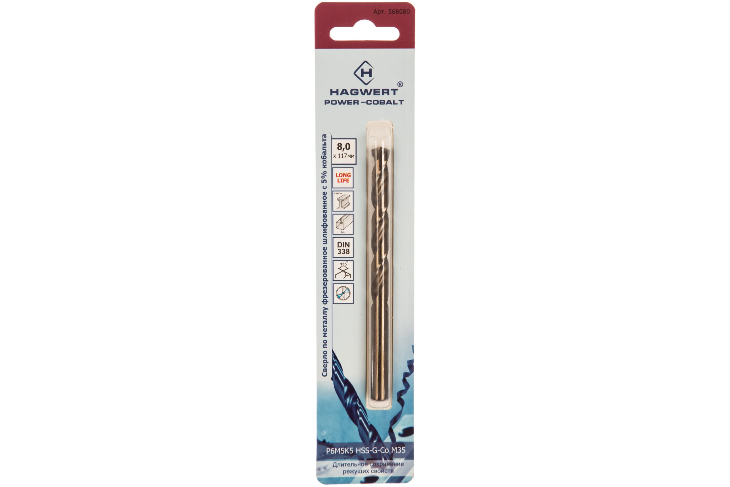 Сверло по металлу кобальтовое Hagwert 8 х 117 мм