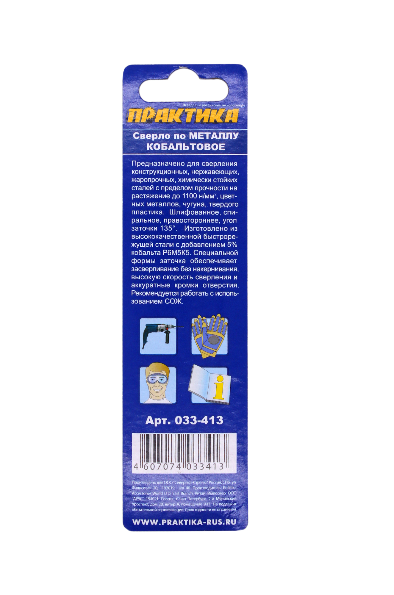 Предназначено для сверления отверстий в изделиях из металла и пластика. Устанавливается на дрели и перфораторы, оборудованные зажимным патроном Благодаря 5% содержанию кобальта выдерживает высокие нагрузки при сверлении металлических конструкций. Полностью шлифовальные. Угол заточки острия 135 градусов.