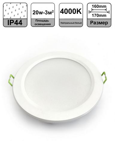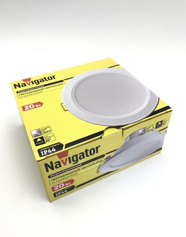 Светильник светодиодный встраиваемый Navigator 20Вт 4000K IP44 белый используется для освещения помещений.