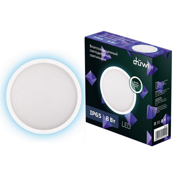 Светильник светодиодный СПП 8Вт 4000К 640Лм 220В накладной матовый Круг IP65 применяется для освещения производственных, административных, медицинских и других помещений, а также для наружного освещения.