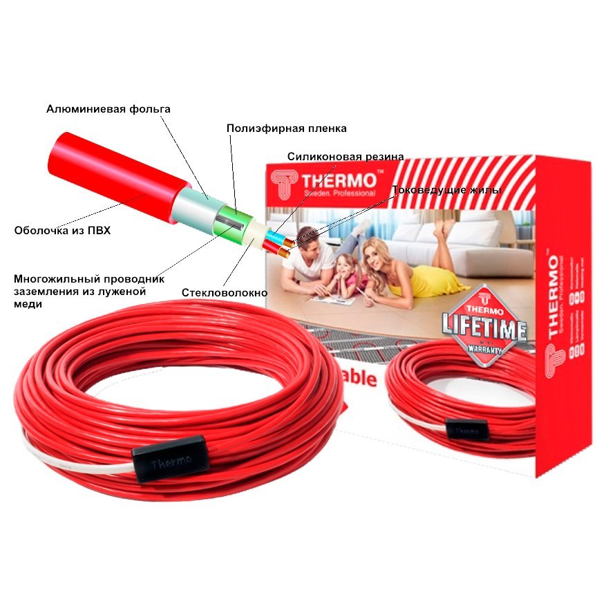 Термокабель для теплого пола Thermo Thermocable 62м 10-12кв.м 1250Вт