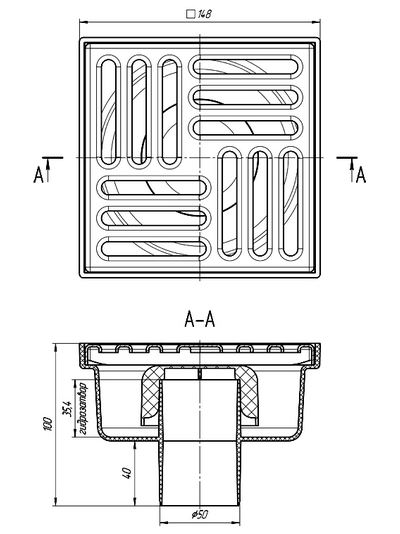 Трап АНИ 50мм, вертикальный, нерегулируемый, решетка металл 15 х 15см