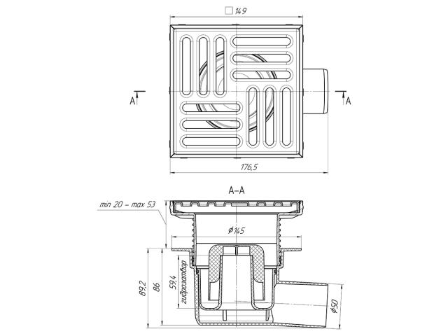Трап АНИ 50мм, горизонтальный, регулируемый, решетка металл 15 х 15см