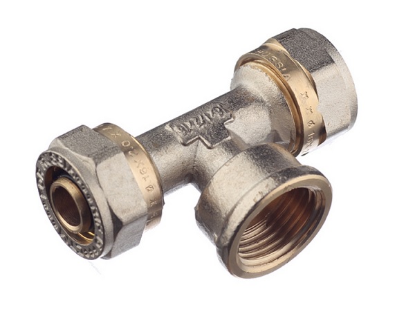 Тройник для металлопластика обжим 16мм -1/2дюйм ВР - используется для подключения металлопластиковых труб диаметром 16мм к другим системам водоснабжения с внутренней резьбой 1/2'', с помощью резьбового соединения. С помощью тройника можно разделить поток воды на два направления.