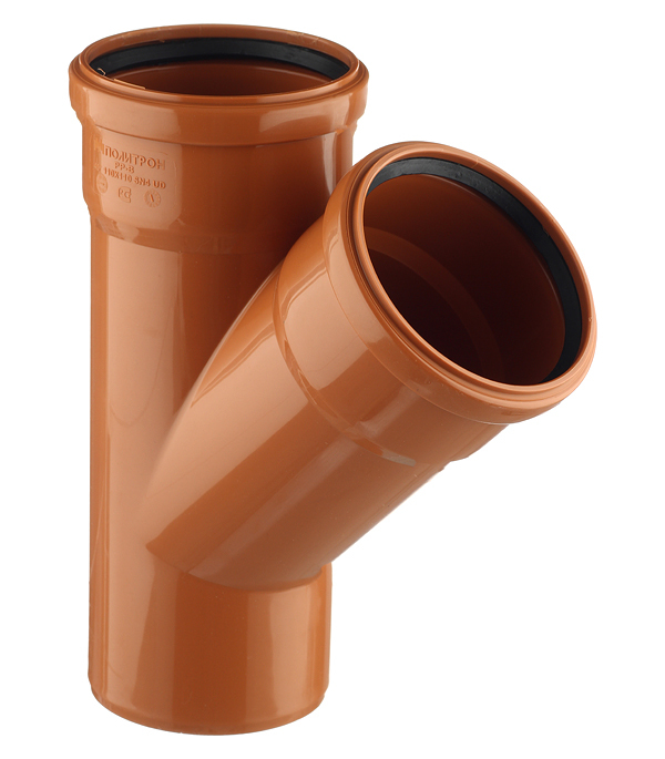 Наружный канализационный тройник под углом 45° предназначен для создания разветвлений в системах из труб диаметром 110 мм. Изготовлен из ударопрочного полипропилена с UV-стабилизацией, устойчивого к внешним воздействиям.