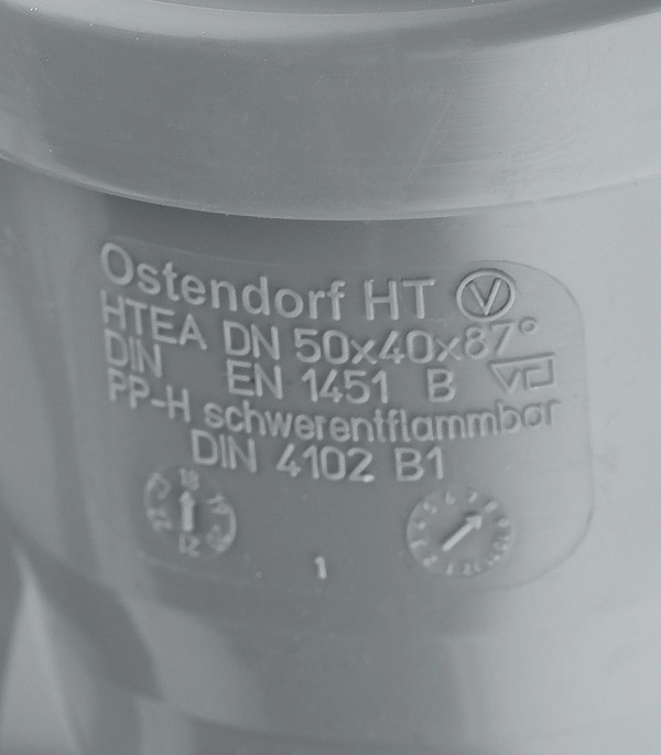 Профессиональный фитинг для создания практически перпендикулярных разветвлений (87°) между трубами ?50 мм и ?40 мм в системах Ostendorf. Изготовлен по специальной технологии из ударопрочного полипропилена с минеральными добавками.
