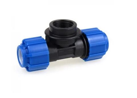 Тройник переходный предназначен для сопряжения труб ПНД с резьбовым соединением. Компрессионные фитинги тройника соосны, резьбовой фитинг расположен перпендикулярно к их оси.
