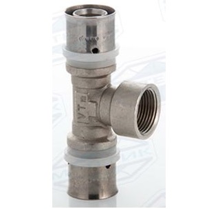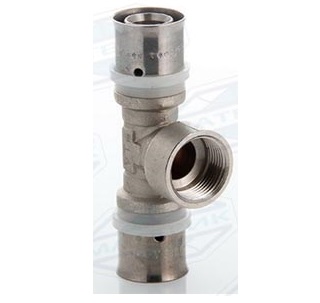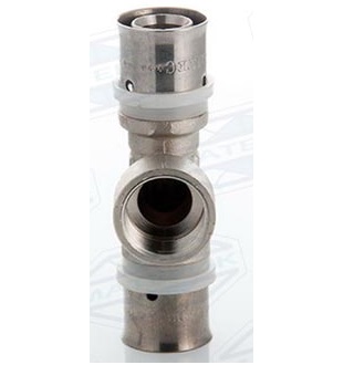 Предназначен для разветвления потока воды на два направления. Имеет два выхода для соединения металлопластиковых труб диаметром 26 мм методом опрессовки и один выход с внутренней резьбой 3/4" (20 мм). Монтируется с помощью специального инструмента – пресс-клещей с профилем TH, U, H.