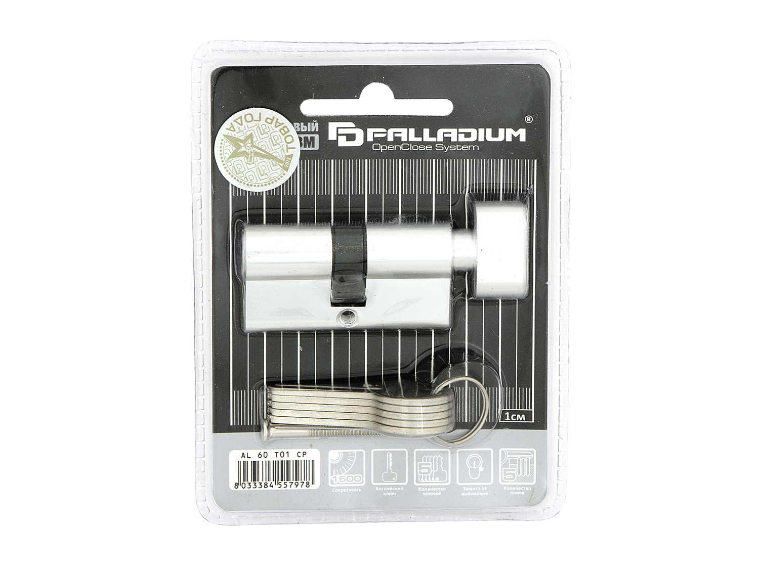 Добрый день, приобретали у вас в "Материке" цилиндр с замком от марки "PALLADIUM". Отличный замок, прочный и надёжный. Радует, что у него более 1500 вариаций комбинаций и защита от выбивания.