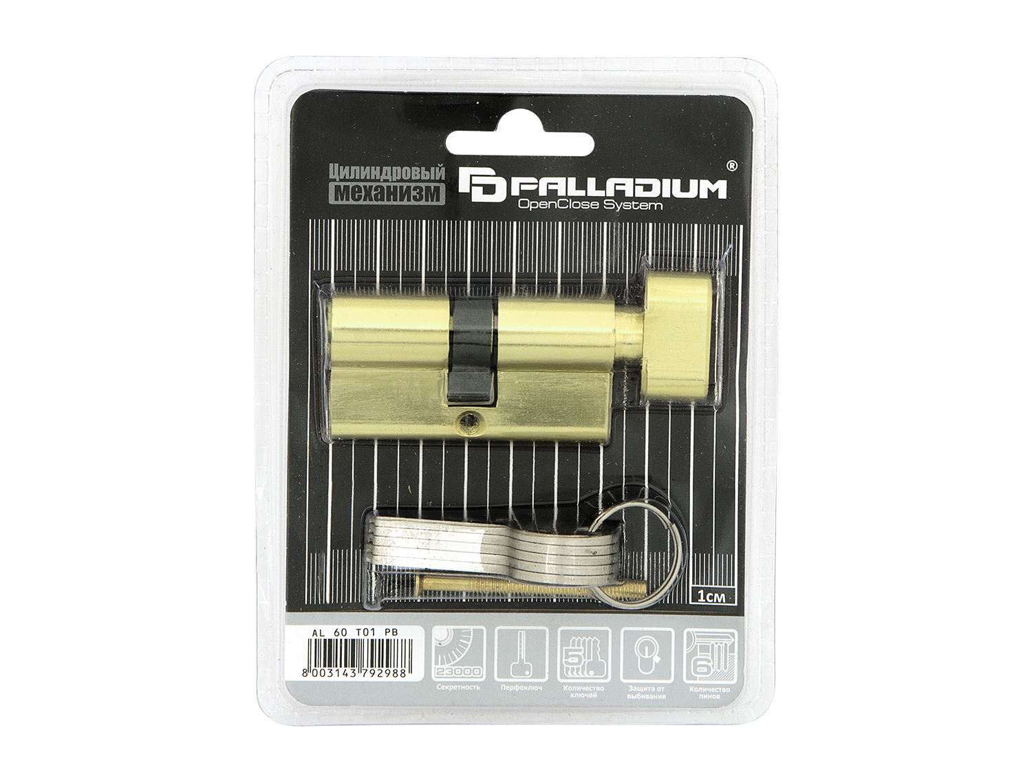 Цилиндр Палладиум 60 мм (30 мм+30 мм) ключ/завертка латунь