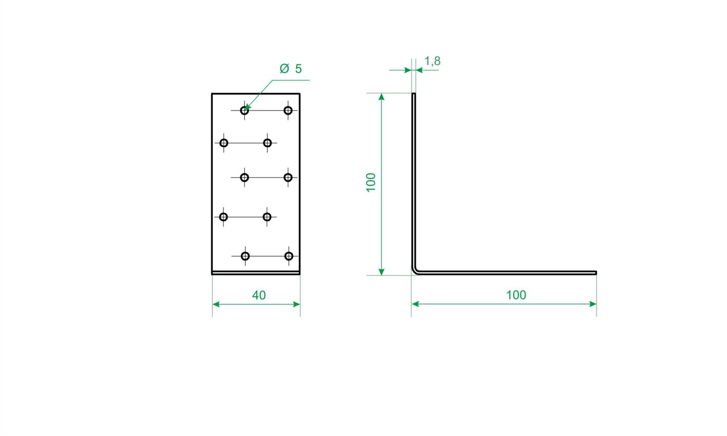 Угол крепежный равносторонний оцинкованный (KUR-40х100) 40 х 100 х 100 х 1,8 мм