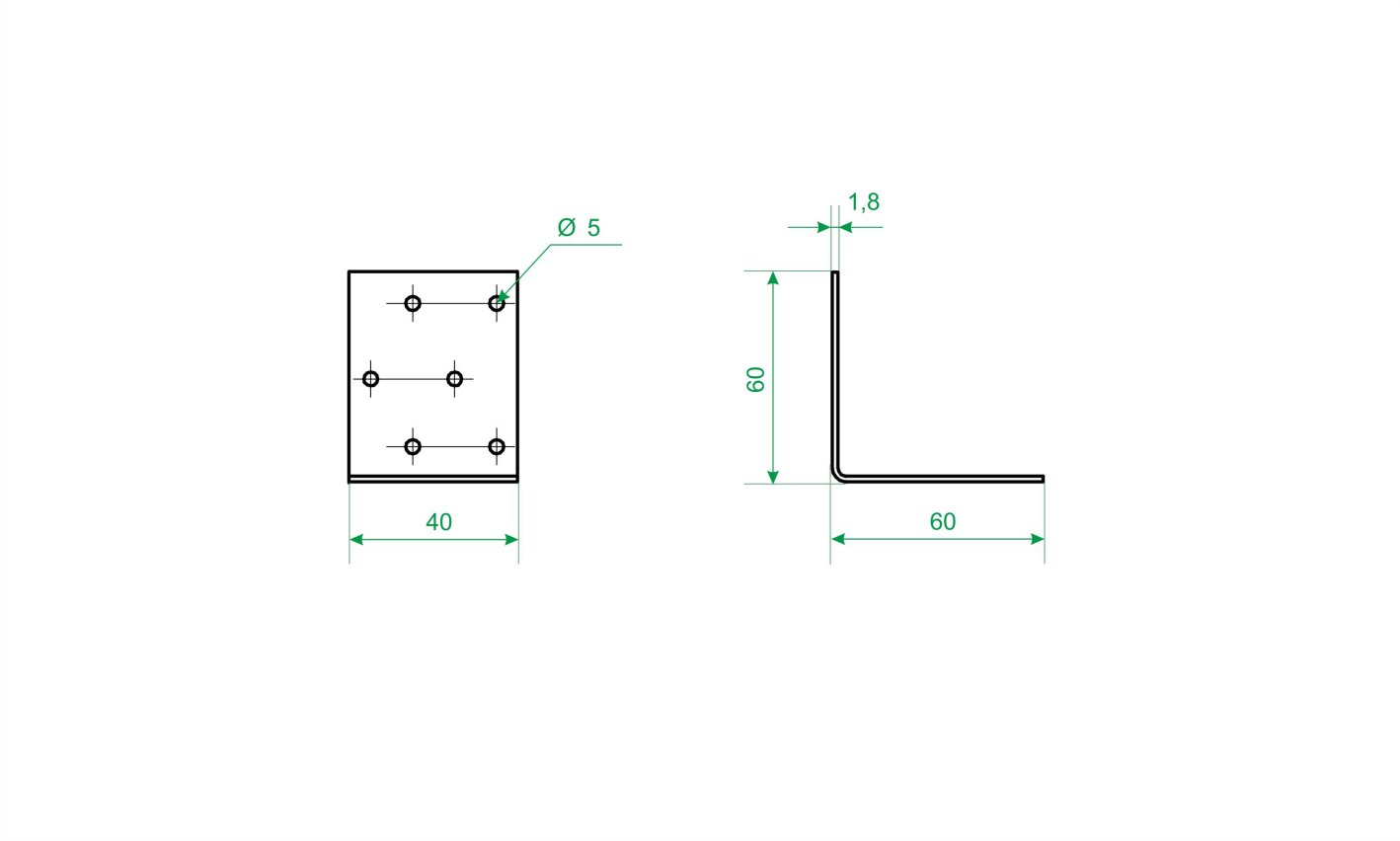 Угол крепежный равносторонний оцинкованный (KUR-40х60) 60 х 60 х 40 х 1,8мм