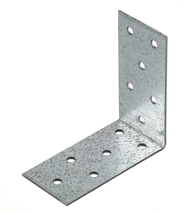 Позволяет образовать прямой угол между элементами крепления и имеет отверстия одинакового диаметра на обеих сторонах, что отличает их от других крепежных уголков. Уголок крепежный равносторонний оцинкованный (KUR) также широко применяется для крепления деревянных конструкций к основанию из других материалов, таких как бетон, кирпич или металл.