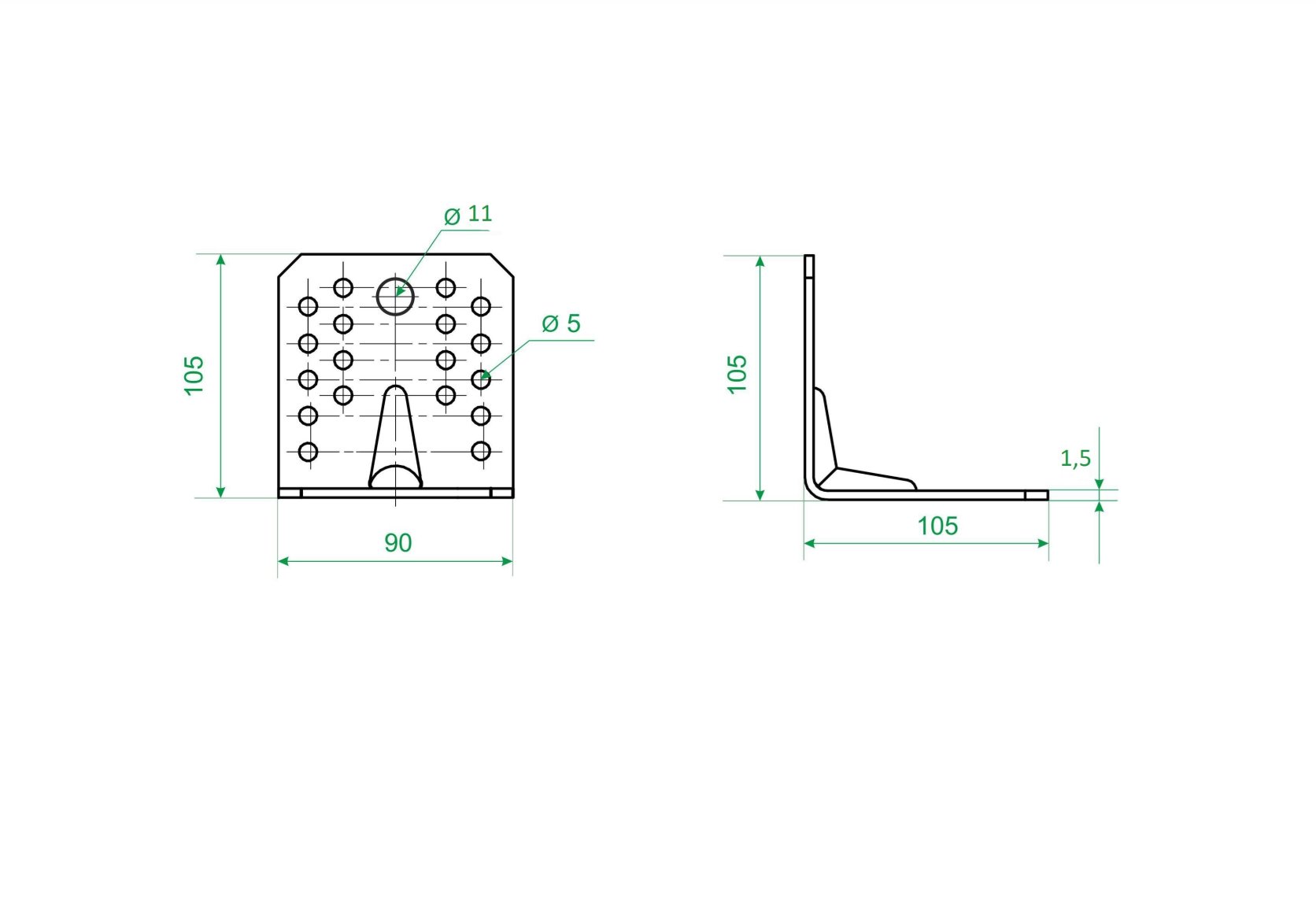 Угол крепежный усиленный оцинкованный (KUU) представляет собой металлический уголок, изготовленный из стали и оцинкованный для защиты от коррозии. Этот уголок обладает дополнительными элементами, которые увеличивают его прочность и устойчивость к нагрузкам. Вогнутая во внутрь уголка грань делает его более устойчивым к изгибу, что особенно важно в узлах с повышенной нагрузкой.