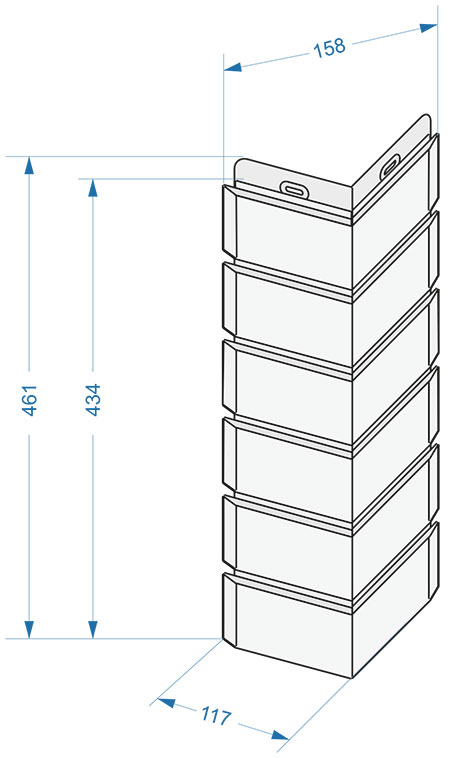 Наружные углы для фасадных панелей Docke Berg используются для облицовки внешних углов зданий и соответствуют панелям по фактуре и по цветам. Углы необходимо устанавливать последовательно после завершения монтажа каждого ряда. Нижний угол ставится на стартовый угол, соответствующий коллекции панелей