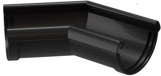 Угловой элемент желоба устанавливается на внутренних и внешних углах кровли и предназначен для соединения желобов под углом 135 градусов для изменения направления движения воды.