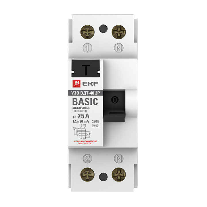 Выключатель дифференциальный (УЗО) ВДТ-40 2Р 25А 30мА тип АС EKF Basic