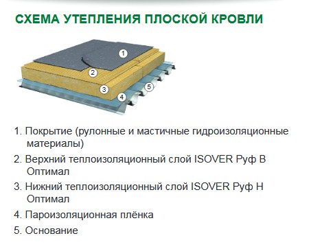 СХЕМА УТЕПЛЕНИЯ ПЛОСКОЙ КРОВЛИ (сверху вниз)