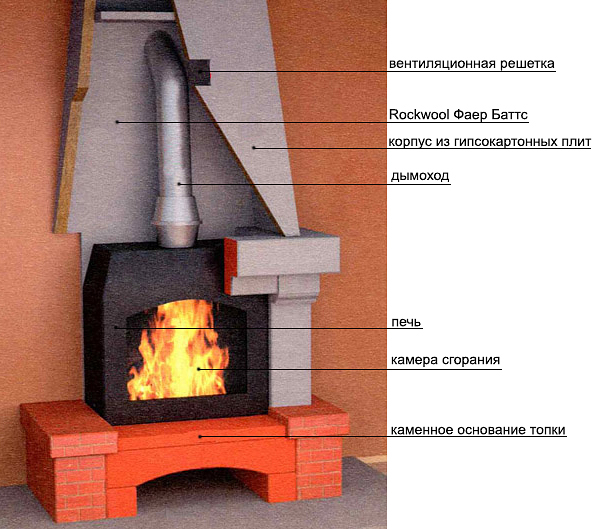 - Предотвращает нагрев наружной отделки камина, увеличивая эффективность обогрева пространства комнаты за счёт конвекции.