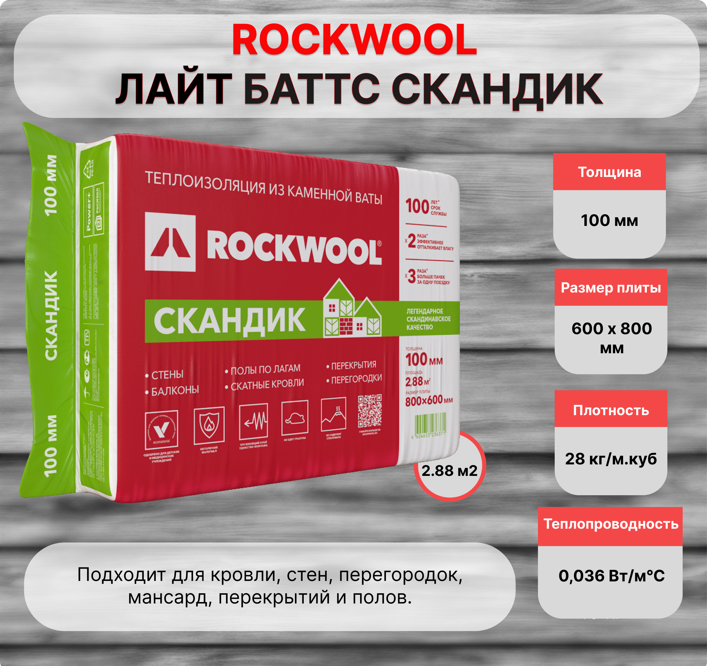 ЛАЙТ БАТТС Скандик – лёгкие гидрофобизированные теплоизоляционные плиты, изготовленные из каменной ваты на основе базальтовых пород. Для удобства продукт выпускается в удобных размерах 800 х 600 (толщиной 50 и 100 мм) для перевозки в легковых машинах.