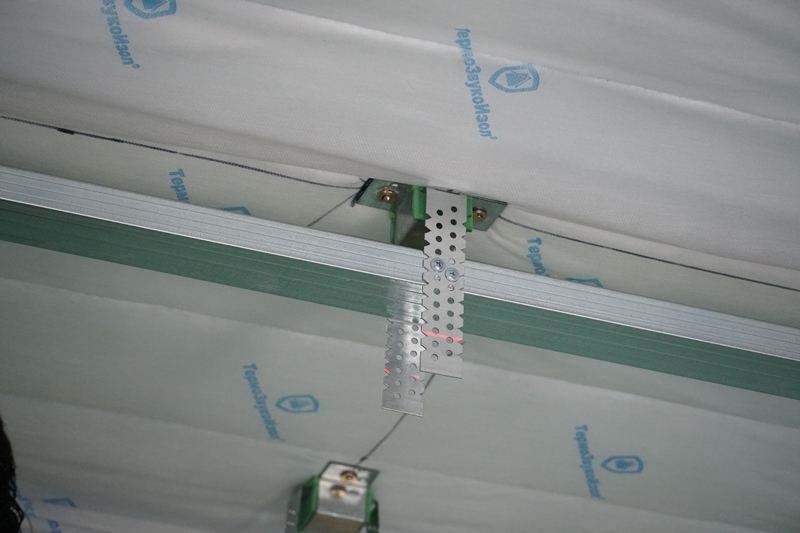 Каркас изделия изготавливается из устойчивой к коррозии анодированной стали. Применение специализированных виброподвесов улучшает акустические характеристики звукоизоляционной системы по сравнению с обычными жесткими креплениями.