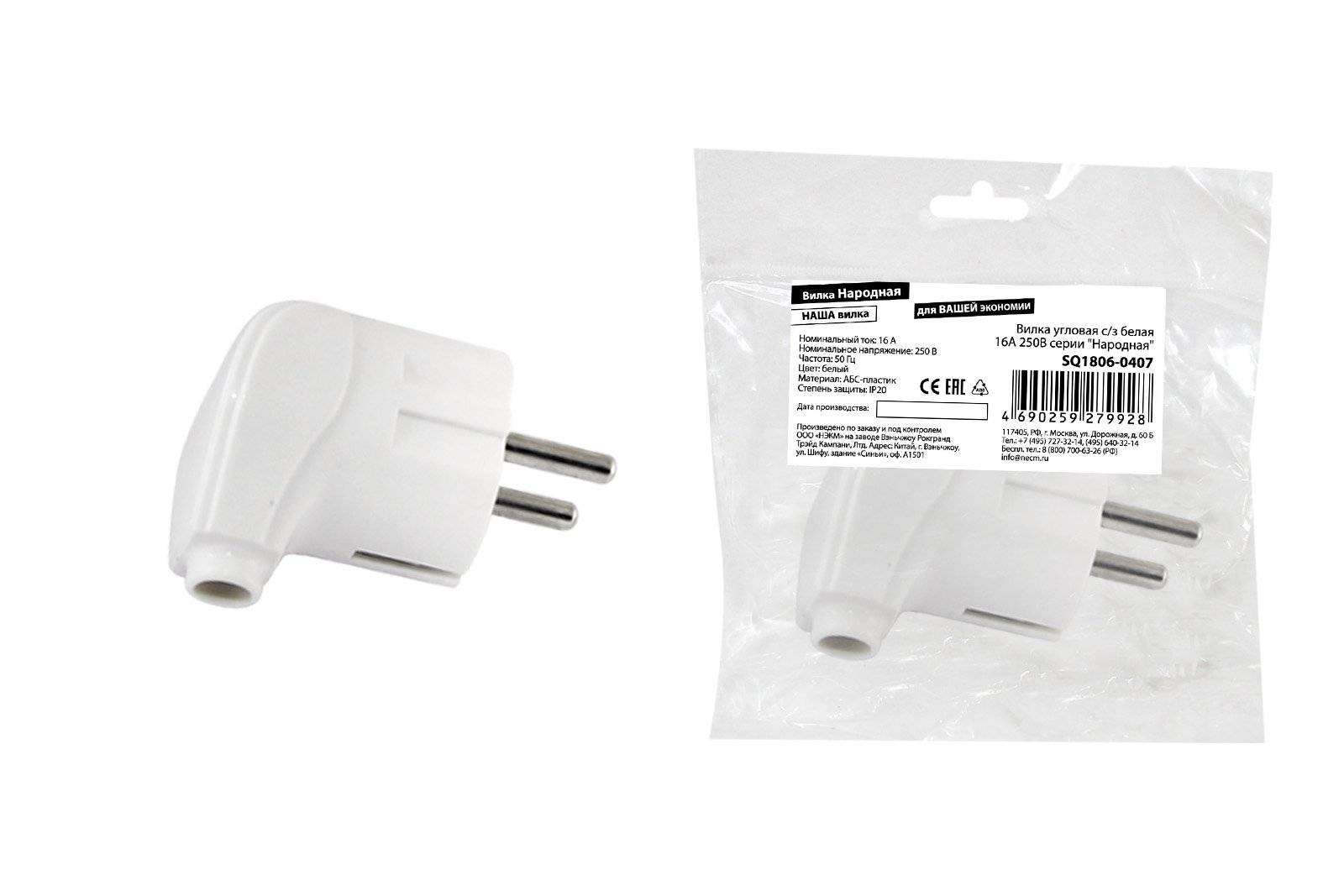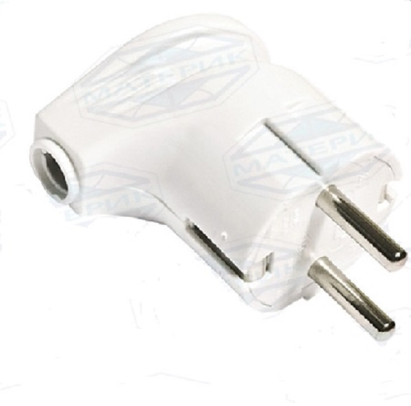 Вилка угловая разборная с заземлением 16А 250В IP20 белая SVET В16-002
