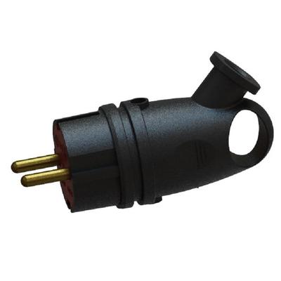 Корпус вилки изготовлен из каучука, который является диэлектриком. Вилка влагозащищенная каучук IP44 может применяться в местах с умеренным количеством влаги (брызги) и пыли и под навесом, благодаря высокой степени защиты IP44. Не допускается использование под струёй воды.