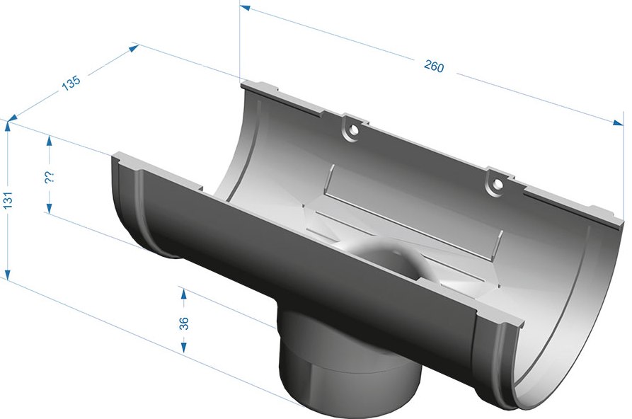 Воронка желоба предназначена для соединения водосточного желоба и трубы для отвода воды из водосборной в водосливную систему.