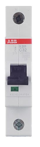 Автоматический выключатель ABB S201 6кА 1-полюсный 32А(С32) 2CDS251001R0324, со встроенным вспомогательным контактом, расположенным снизу, предназначен для обеспечения безопасной эксплуатации электрических цепей и оборудования, и для нечастого включения/отключения электрических цепей.
