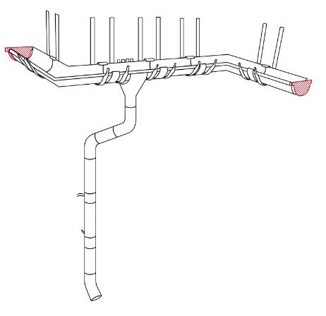 Заглушка желоба - это элемент водосточной системы, который устанавливается на торцах желоба для обеспечения фиксации, герметичности и жесткости желоба. Заглушку можно устанавливать как с левого, так и с правого края желоба. Стык желоба и заглушки необходимо заполнить кровельным герметиком.
