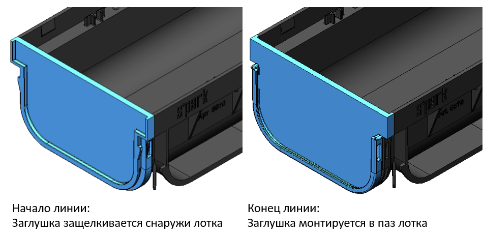 Заглушка для пластикового лотка устанавливается: