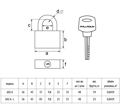 Навесной замок Palladium 602A L предназначен для использования, как в помещении, так и на улице. Он не подвержен воздействию сырости и влаги, имеет небольшой вес и может использоваться в качестве замка для велосипедных цепей или для защиты хозяйственных построек в частных домах.