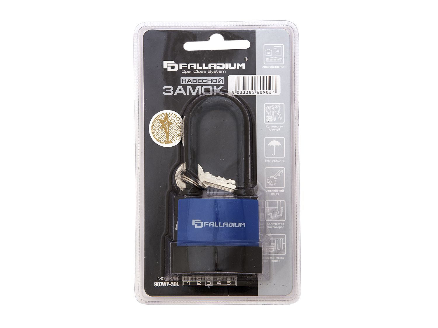 Палладиум 907WP-50L - это всепогодный навесной замок среднего размера с удлиненной дужкой. Прочные материалы, водонепроницаемость и универсальный размер делают его надежным средством защиты вашего имущества.