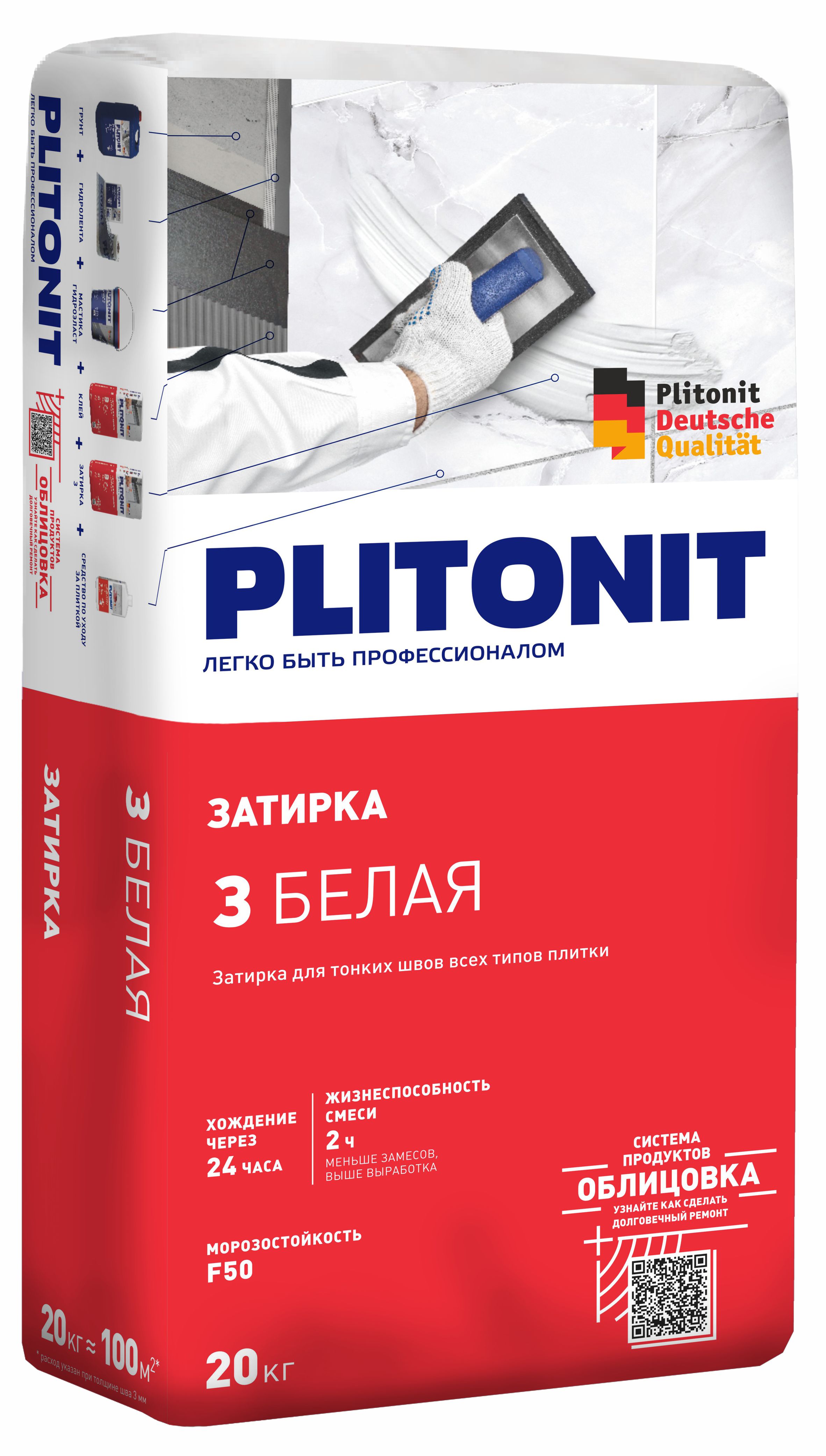 Затирка ПЛИТОНИТ-З для швов кафеля белая 20кг – сухая строительная смесь на цементной основе, для затирки межплиточных швов на стенах и полах при внутренних и наружных работах. Используется для затирки швов керамической плитки и плитки из натурального и искусственного камня.