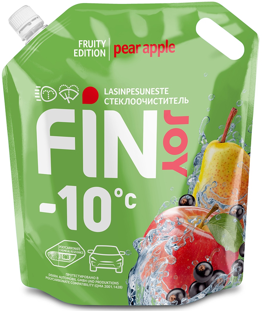 Автоочиститель стекол FinJoy с фруктовым ароматом предназначен для использования в зимний период и готов к применению при температуре воздуха до минус 10°С.