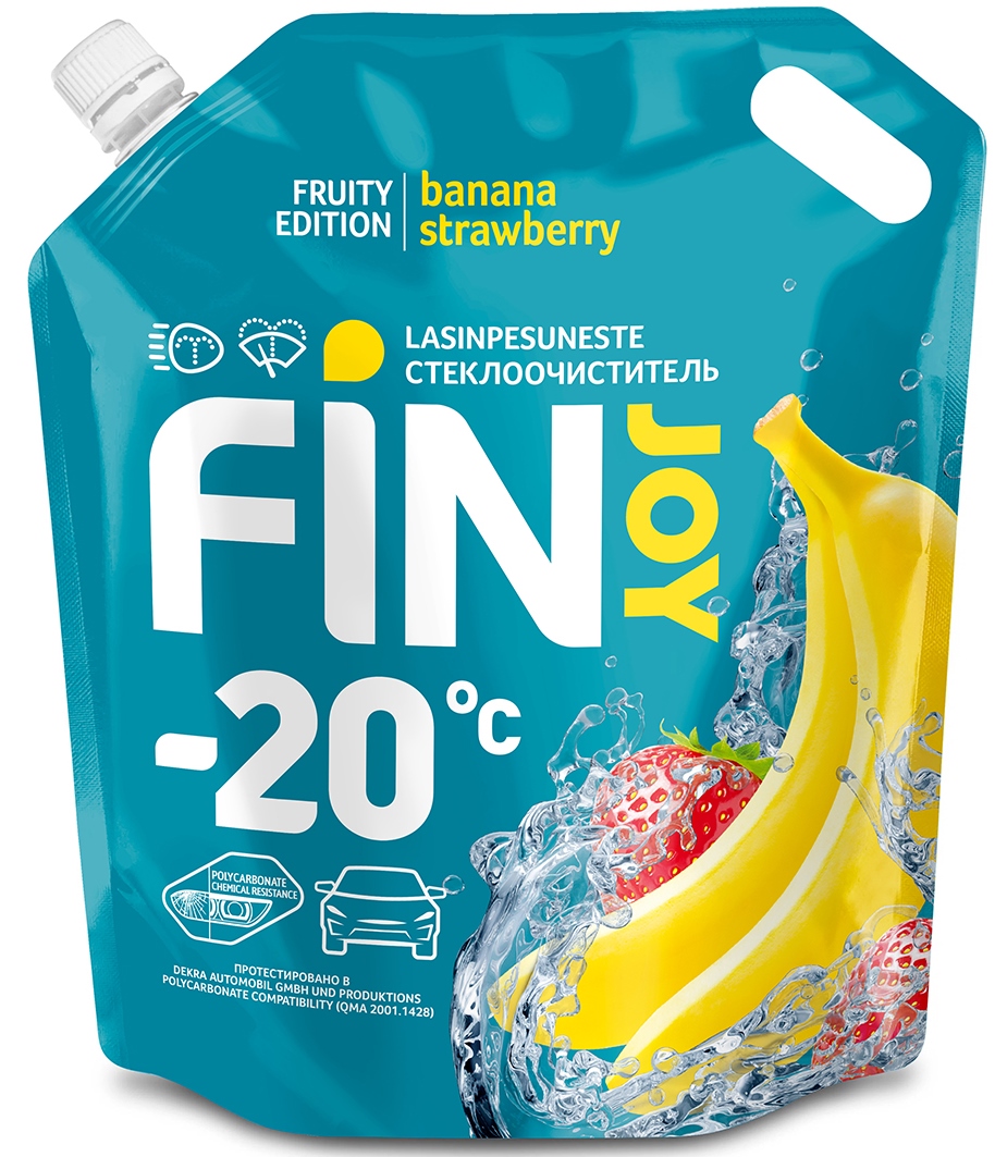 Автоочиститель стекол FinJoy с фруктовым ароматом предназначен для использования в зимний период и готов к применению при температуре воздуха до минус 20°С.
