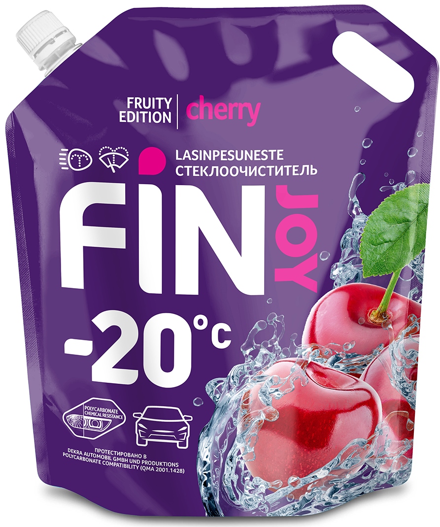 Автоочиститель стекол FinJoy с ароматом вишни предназначен для использования в зимний период и готов к применению при температуре воздуха до минус 20°С.