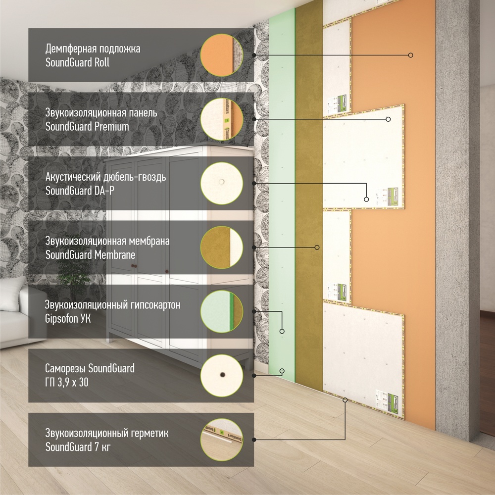 Шумоизоляция помещения удовольствие дорогое, купили квартиру в новом доме и решили позаботиться о тишине заранее. Остановились звукоизоляционной самоклейкой мембране SoundGuard Membrane. Монтаж не отличается особой сложностью, делал своими силами, мембрану клеил прямо на гипсокартон. Все для ремонта покупал в Материке, заказывал на сайте, на следующий день привозили, удобно!